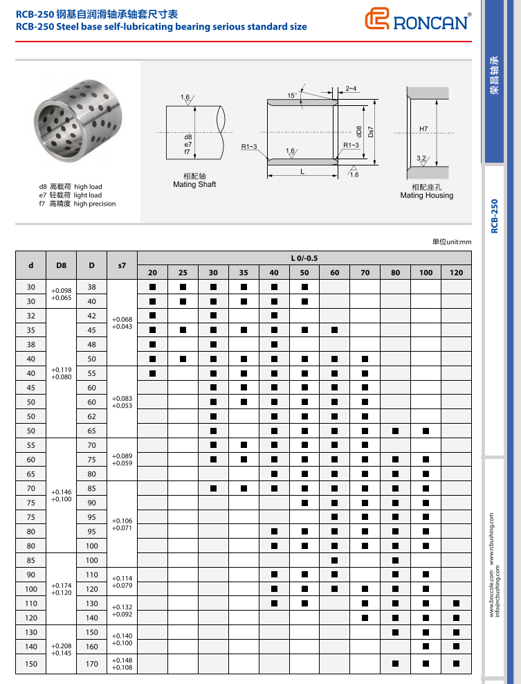 RCB250則在 RCB200的基礎(chǔ)上進(jìn)行了改良,以固體潤(rùn)滑劑嵌入替代了原有的披覆方式,使得產(chǎn)品在使用過程中提供了源源不斷的潤(rùn)滑源,從而達(dá)到免維護(hù)的目的。
